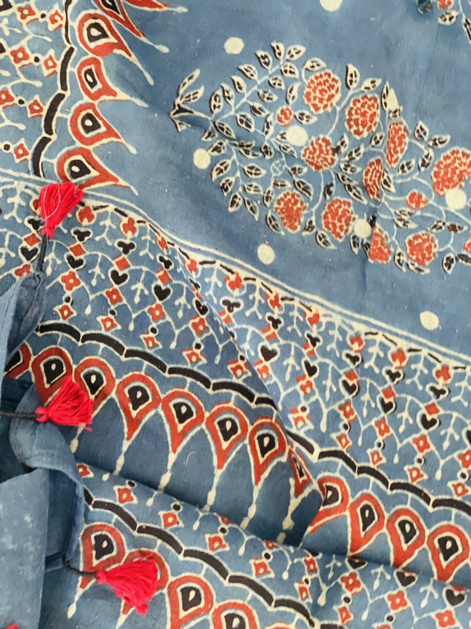 Handbedrucktes Ajraktuch aus Leichter Baumwolle.